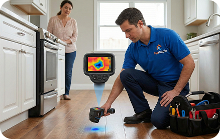 Our trained plumbers are experts at detecting any hidden leakage under floors or behind walls, which can become a serious cause for damage and waste thousands of gallons of water yearly.